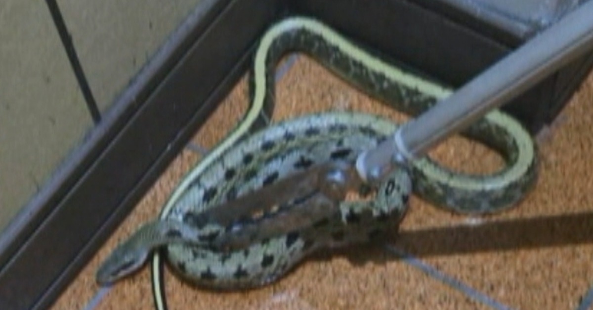 嘉義有民眾分享,房間內的窗型冷氣機,吹到一半突然感覺不涼,居然不是壞了,而是出風口被一條黑眉錦蛇堵住,嚇得他趕緊求援!