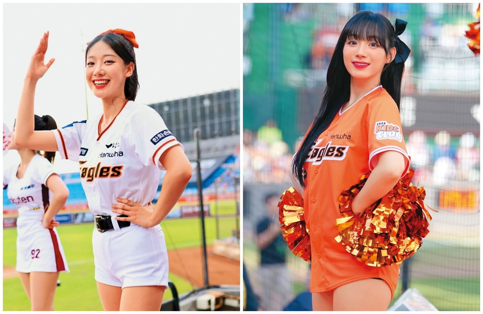 河智媛(右圖,翻攝自河智媛IG)與禹洙漢(左圖,翻攝自樂天女孩臉書)在韓國同屬職棒「韓華鷹」啦啦隊成員,私交甚好的兩人更一起來台打拚當樂天女孩。