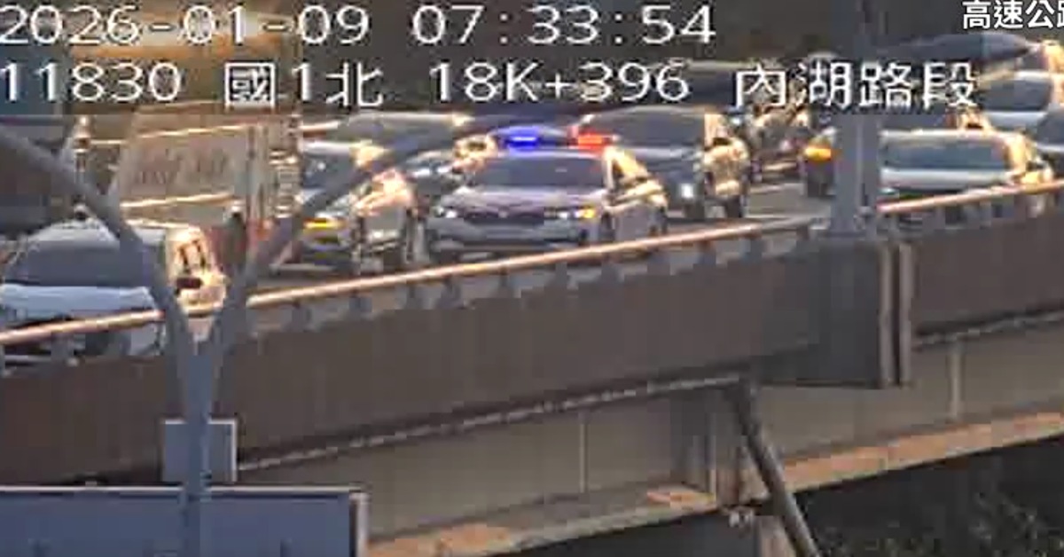 快訊/上班注意!國道追撞車禍 路段回堵國1高架南向18.2km處汐止端-堤頂路段,今(9日)上午07:28發生自小客車與大客車追撞車禍,一度造成路段回堵。